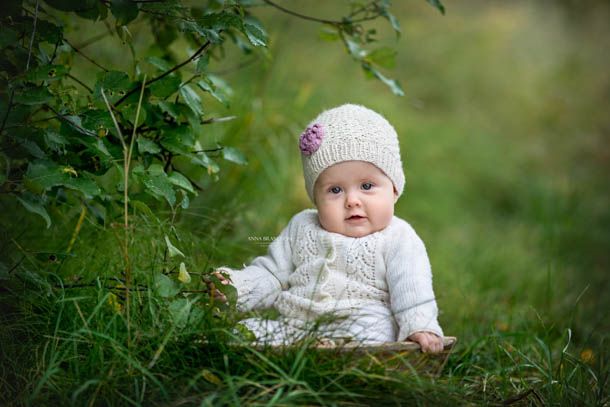 Den der tiden når de kan sitte, men ikke krabbe, er en gullalder å fotografere. Her er stort sett alle babyer veldig blide og fornøyde og sjelden sjenerte. De har fortsatt de runde herlige babyformene som forsvinner når de begynner å gå. Vi får ofte fine bilder som viser personligheten til barnet.